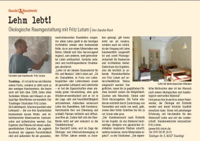 „Lehm ist ein ideales Baumaterial für Alt- und Neubau“, klärt Lutum auf. „Ob als Stampflehm, in Form von Lehmbauplatten oder Lehmsteinen sowie als gesunder Lehmputz und Lehmfarbe – er hat die Eigenschaften einer einmalig guten Verarbeitung, eine gute Wiederverwendbarkeit und er ist in der Lage, sehr viel Feuchtleitfähigkeit aufzunehmen. Außerdem verbessert Lehm das Raumklima, hält Kondensationsfeuchte fern von Dämmung und schließt Flächen luftdicht und diffusionsoffen ab. Zudem lädt sich die Oberfläche nicht auf und reduziert so die Staubbelastung“.